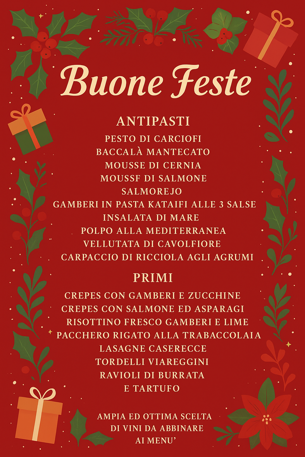 Alla Gastronomia Gemma abbiamo preparato un Menù delle Feste pensato per ogni palato: componibile, personalizzabile e perfetto per chi vuole festeggiare con gusto.