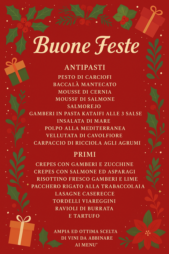 🌟 Antipasti, primi, secondi e contorni: scegli i tuoi piatti preferiti tra le nostre specialità — tradizione, mare e sapori raffinati — e crea il tuo percorso ideale.